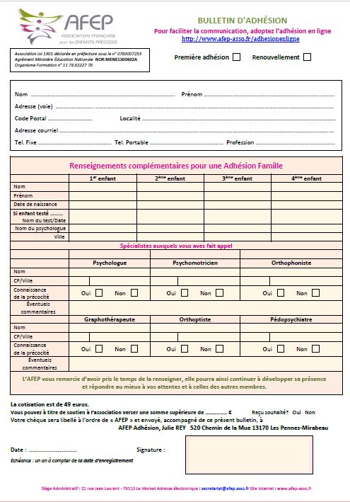 Adhésion – AFEHP enfants précoces Convertir en PDF Version imprimable Suggérer par mail