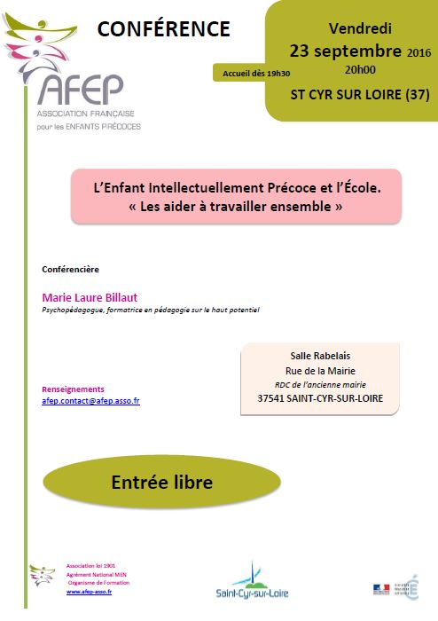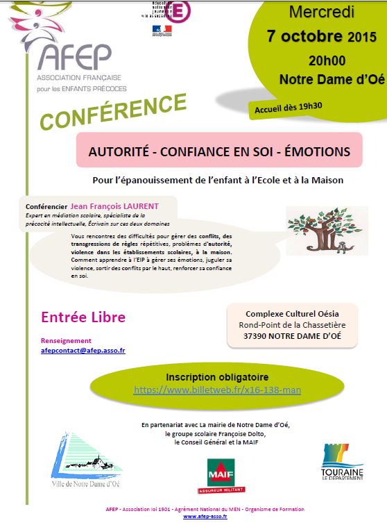 CONFERENCE "L'enfant intellectuellement précoce et l'école. Les aider à travailler ensemble" Renseignements |