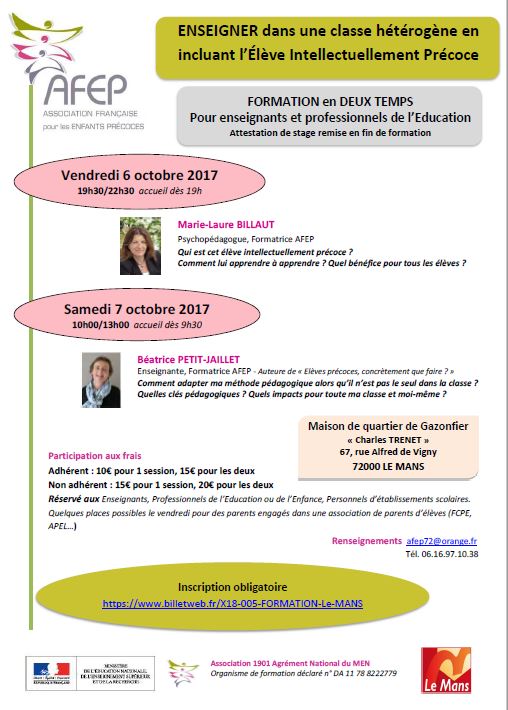 "Enseigner dans une classe hétérogène en incluant les élèves intellectuellement précoces"     Renseignements   et   Inscriptions