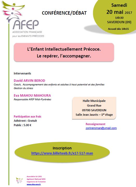 "L'enfant intellectuellement précoce : Le repérer, l'accompagner." Renseignements et Inscriptions | | | | | | | | | | | | |