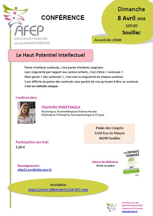 "Comprendre et accompagner l'enfant intellectuellement précoce en famille et à l'école" Renseignements et Inscriptions