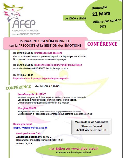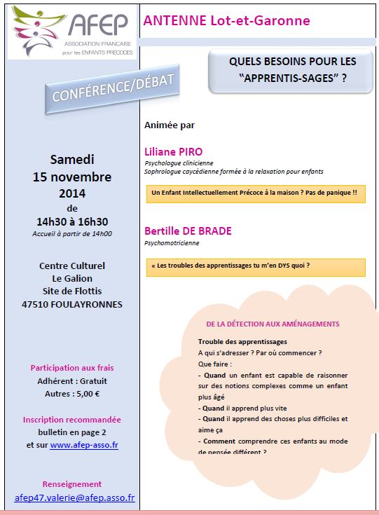 L'AFEP vous informe de la conférence organisée par la FCPE Marmande
