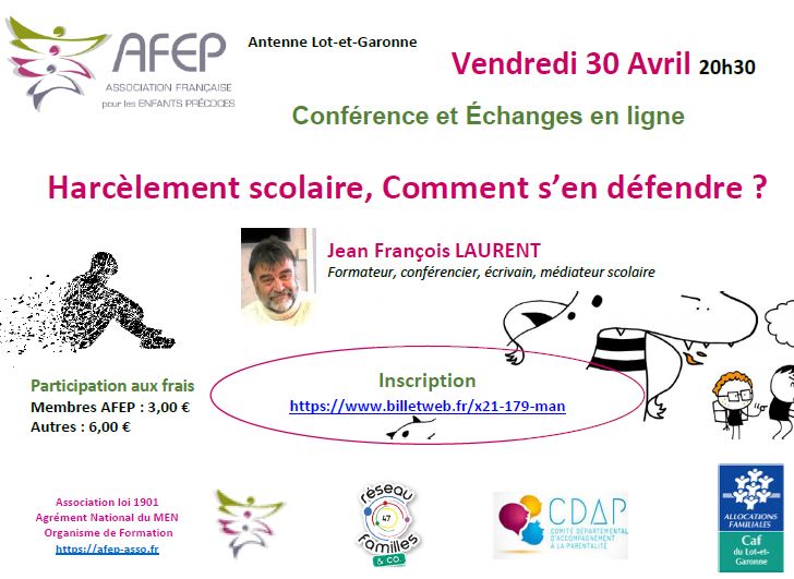 "Le harcèlement scolaire, comment s'en défendre?"       Renseignements  et     Inscriptions