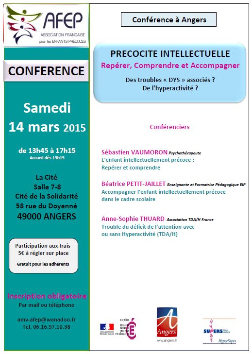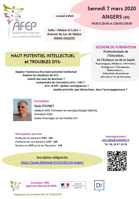 FORMATION à ANGERS " Haut potentiel intellectuel et troubles DYS-" Renseignements Inscriptions Pour enseignants et professionnels |
