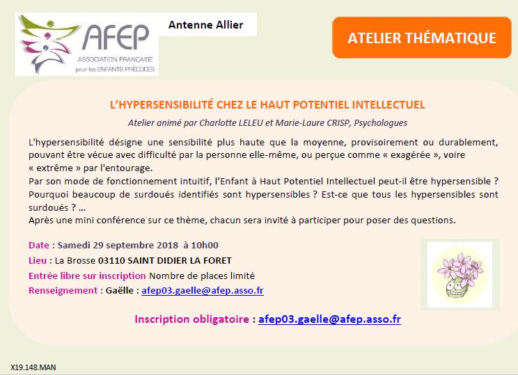 "L'hypersensibilité chez les enfants à haut potentiel intellectuel"      Renseignements et inscriptions
