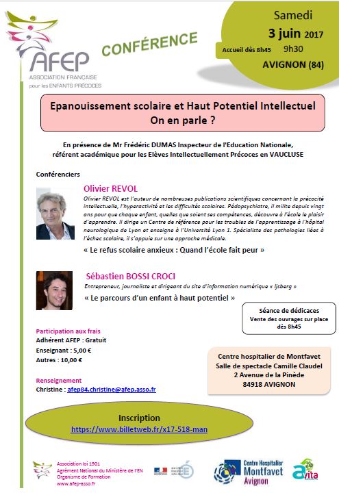 "Epanouissement scolaire et haut potentiel intellectuel. On en parle?"   Renseignements  et  Inscriptions