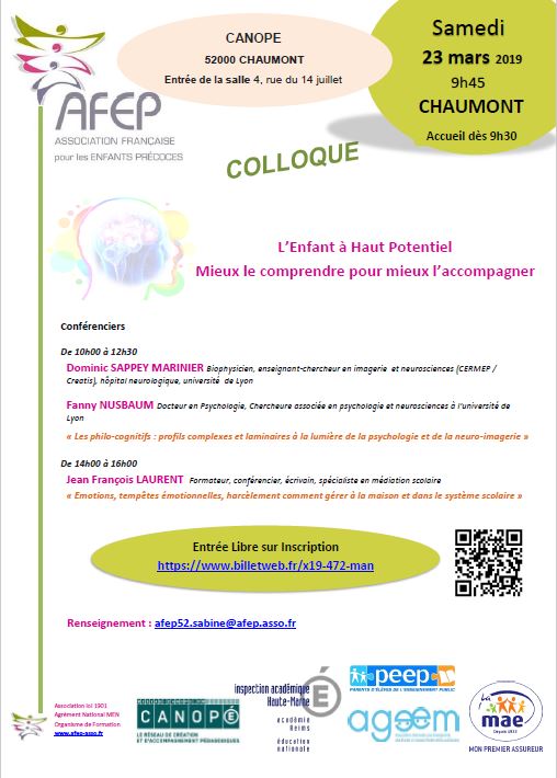 "L'enfant à haut potentiel – Mieux le comprendre pour mieux l'accompagner" Renseignements et Inscriptions | | | | | | | | | | | | |