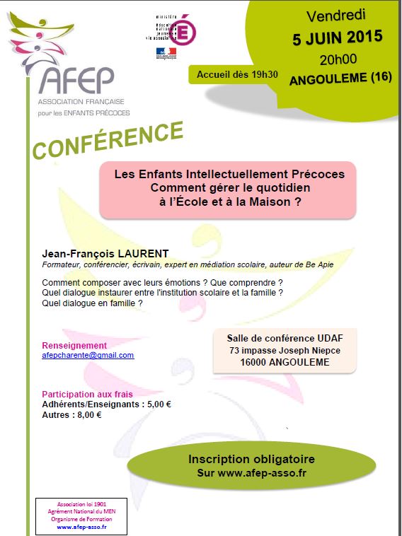 "L'enfant intellectuellement précoce et l'école. Comment favoriser son parcours scolaire?"   Renseignements  et  Inscriptions