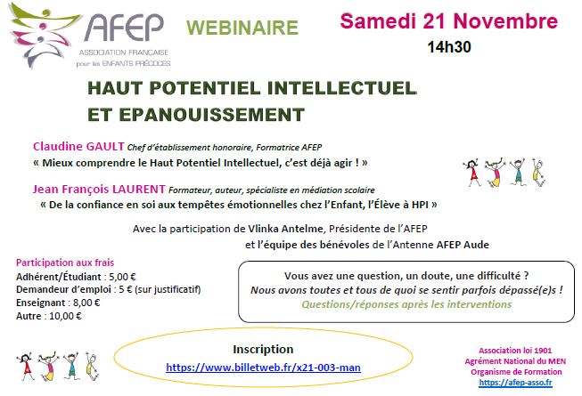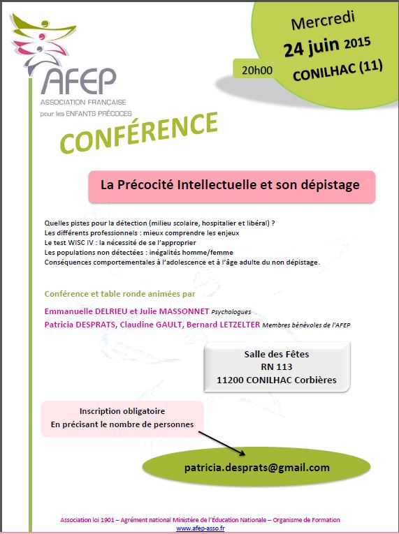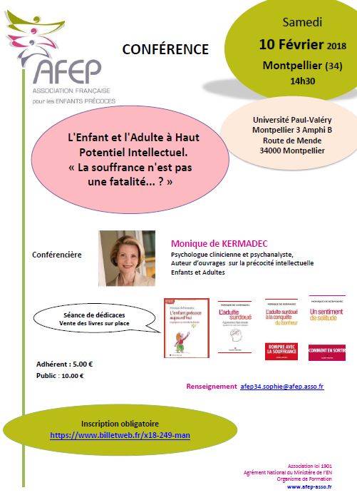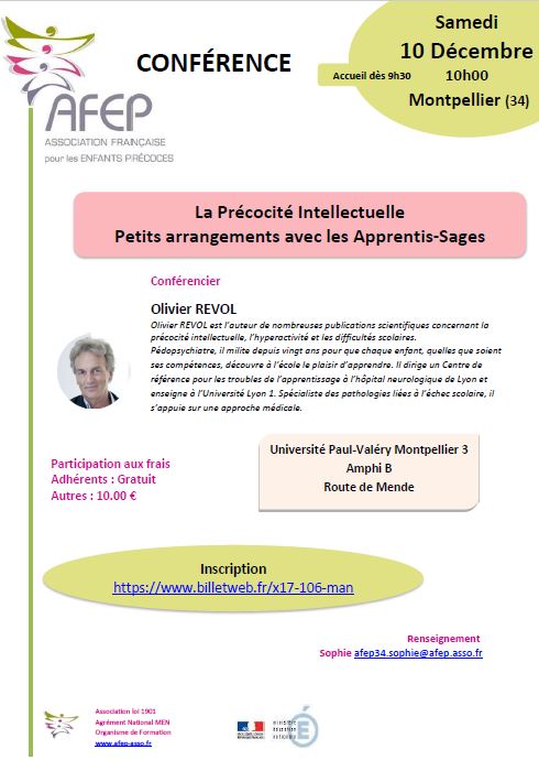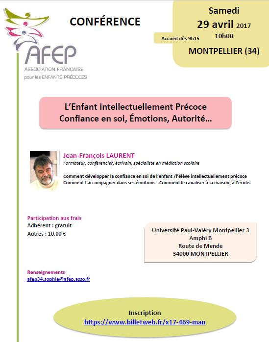 "L'enfant intellectuellement précoce. Confiance en soi, émotions, autorité…"    Renseignements  et Inscriptions